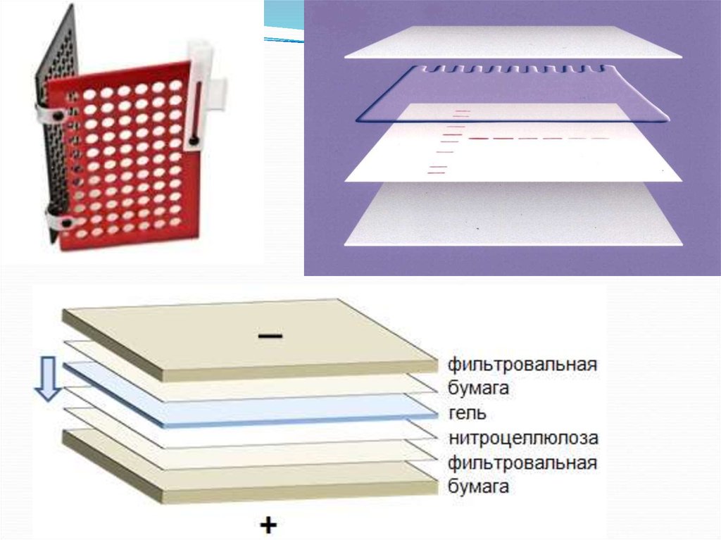В методе электроблоттинга перенос белков из геля намембрану (изготовленную из нитроцеллюлозы или