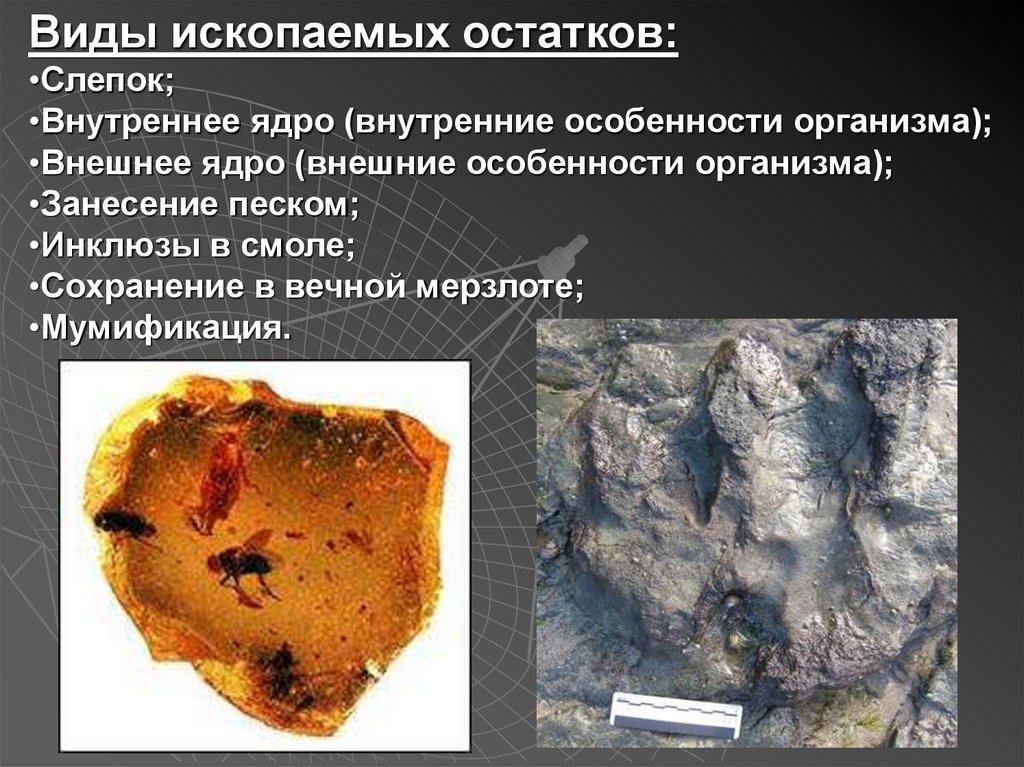 Виды ископаемых остатков:•Слепок;