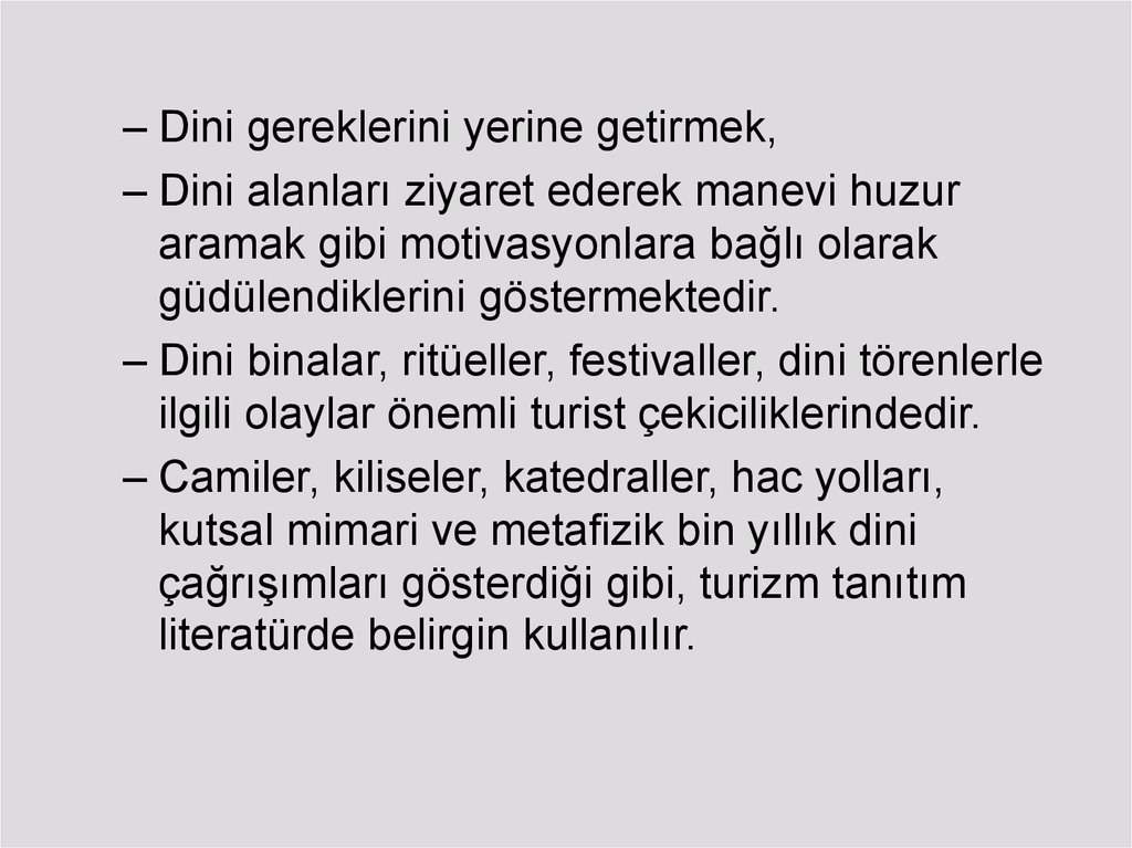 • İnanç turizmi kavramı; diniçekim merkezi olan ülkelerin
