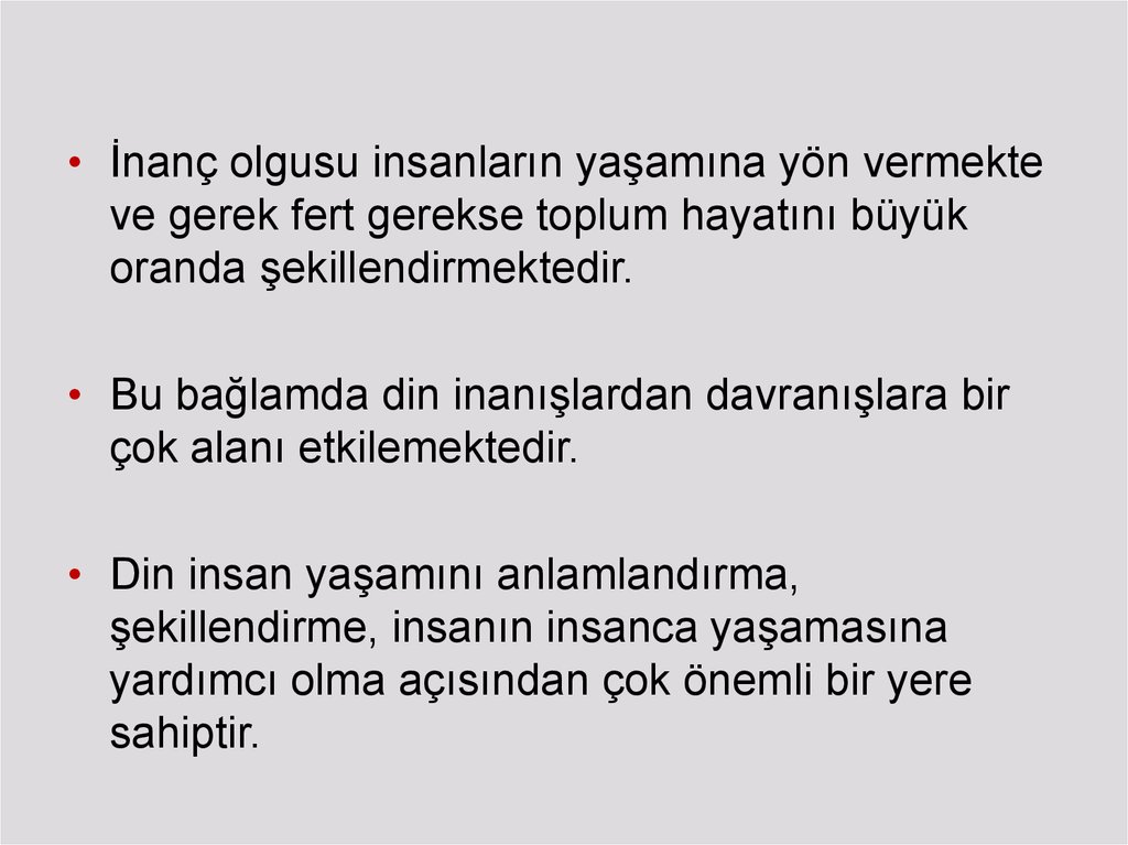 • İnanç olgusu insanların yaşamına yön vermekteve gerek fert gerekse toplum hayatını büyük
