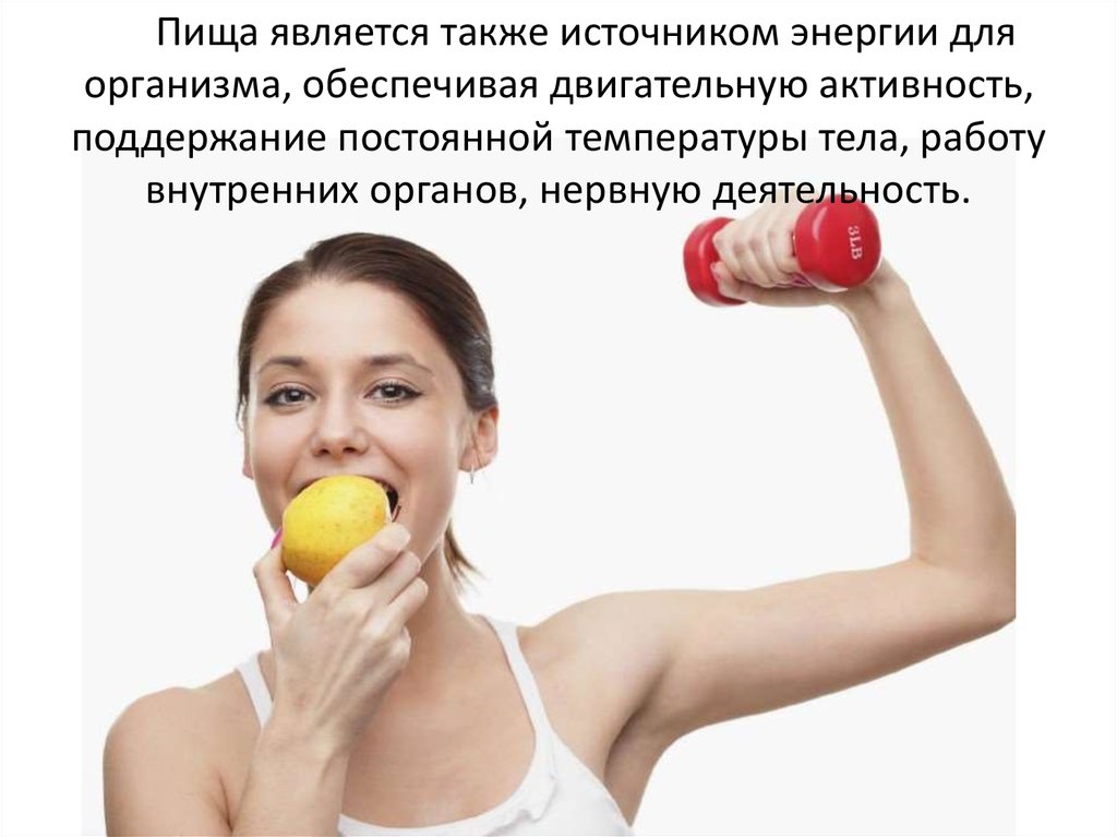 Пища является также источником энергии дляорганизма, обеспечивая двигательную активность,