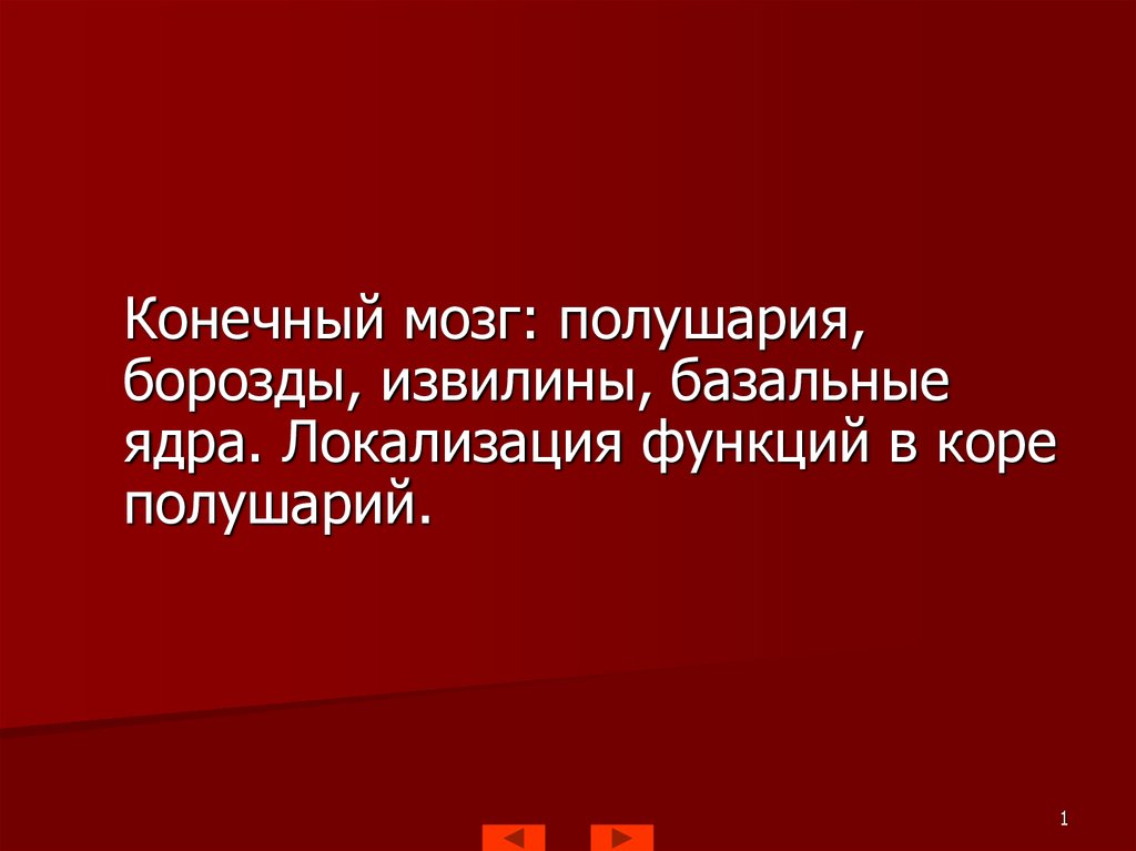 Конечный мозг: полушария, борозды, извилины, базальные ядра. Локализация функций в коре полушарий