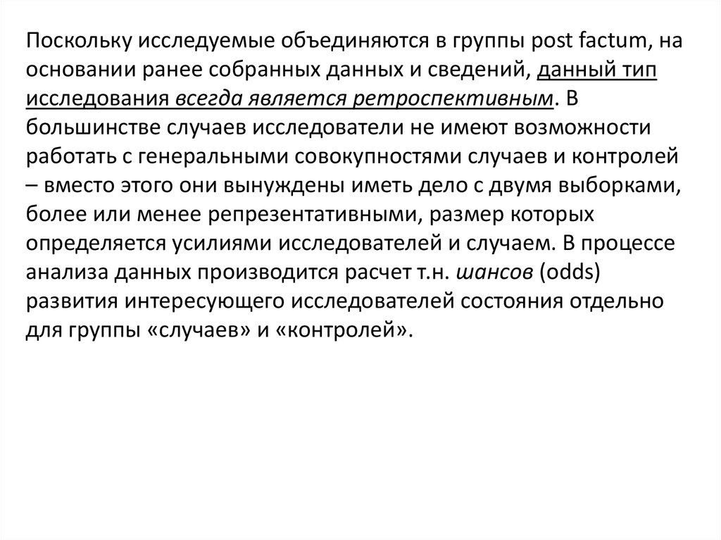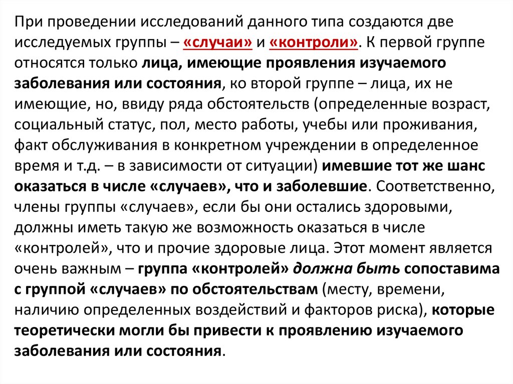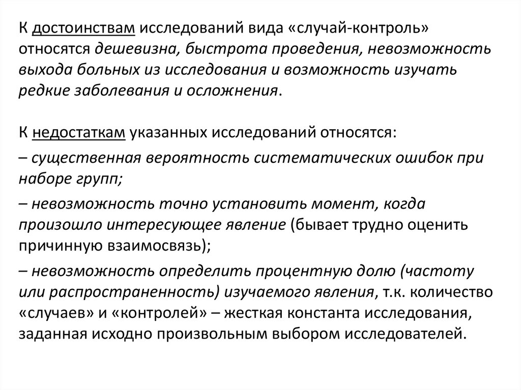 К достоинствам исследований вида «случай-контроль»относятся дешевизна, быстрота проведения, невозможность