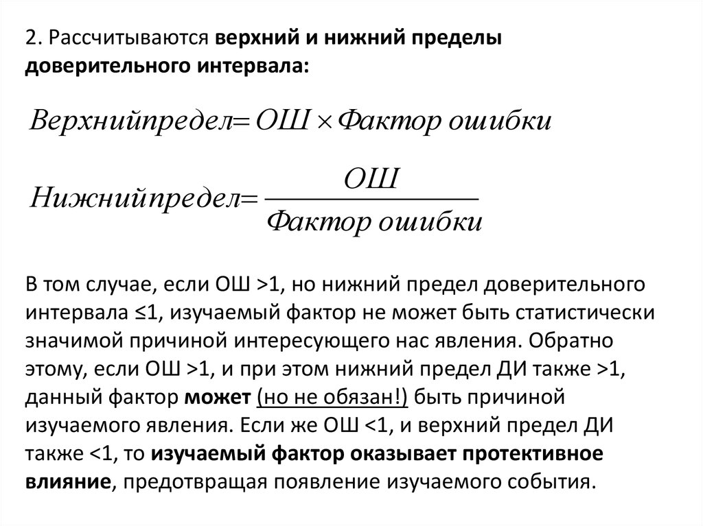 неминуемо окажется, что ОШ и нижний предел доверительного