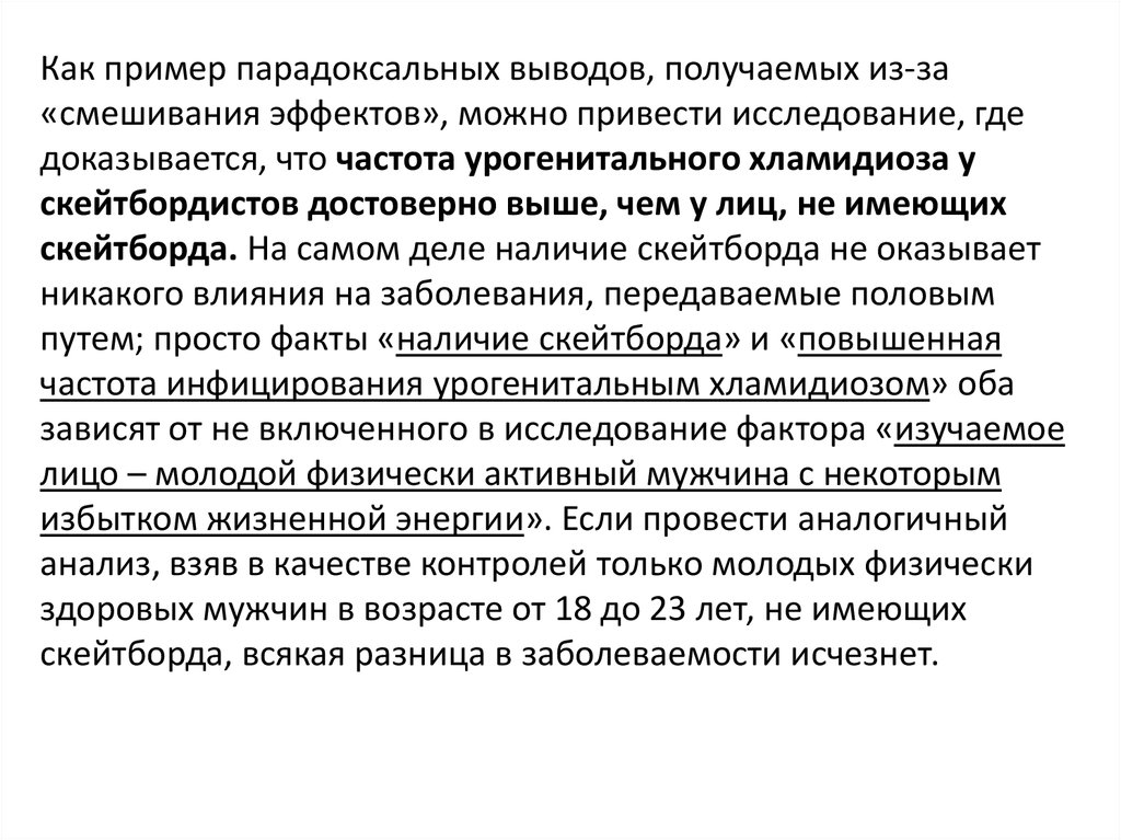 Как пример парадоксальных выводов, получаемых из-за«смешивания эффектов», можно привести исследование, где