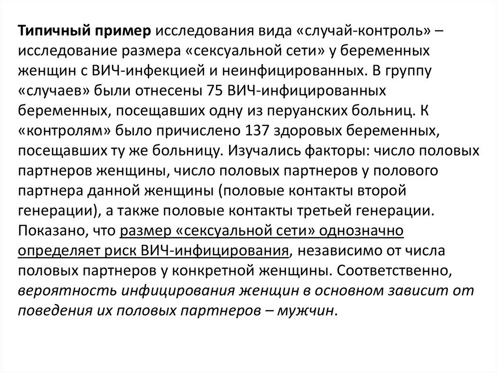 Типичный пример исследования вида «случай-контроль» –исследование размера «сексуальной сети» у беременных