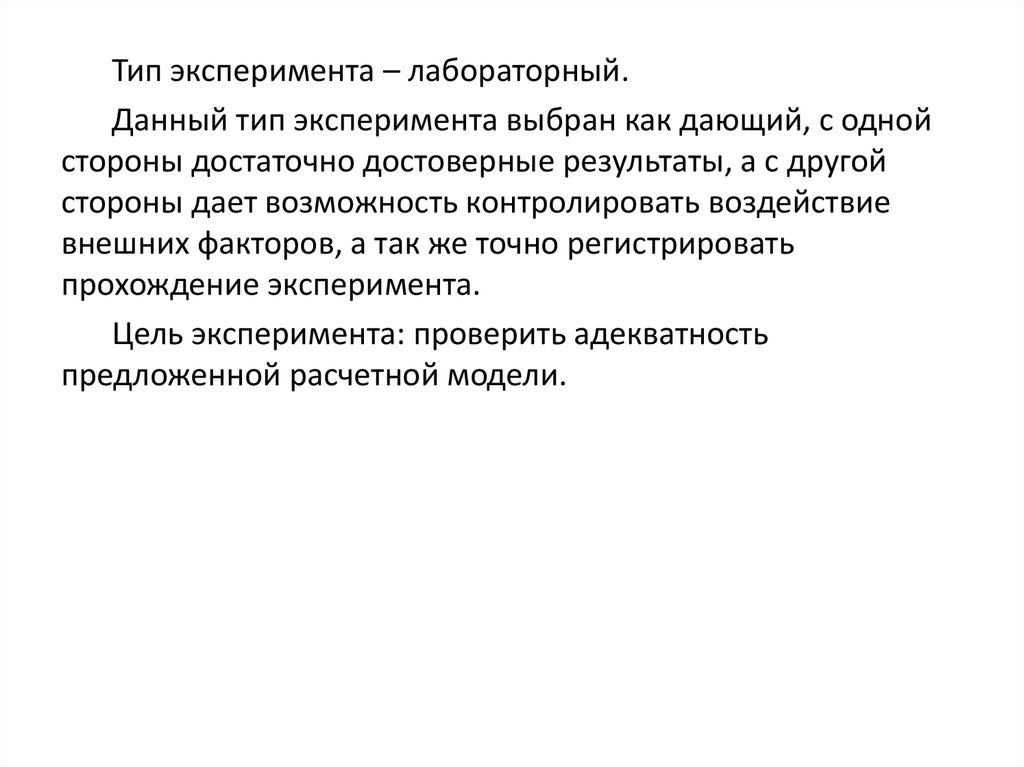 Тип эксперимента – лабораторный.Данный тип эксперимента выбран как дающий, с одной