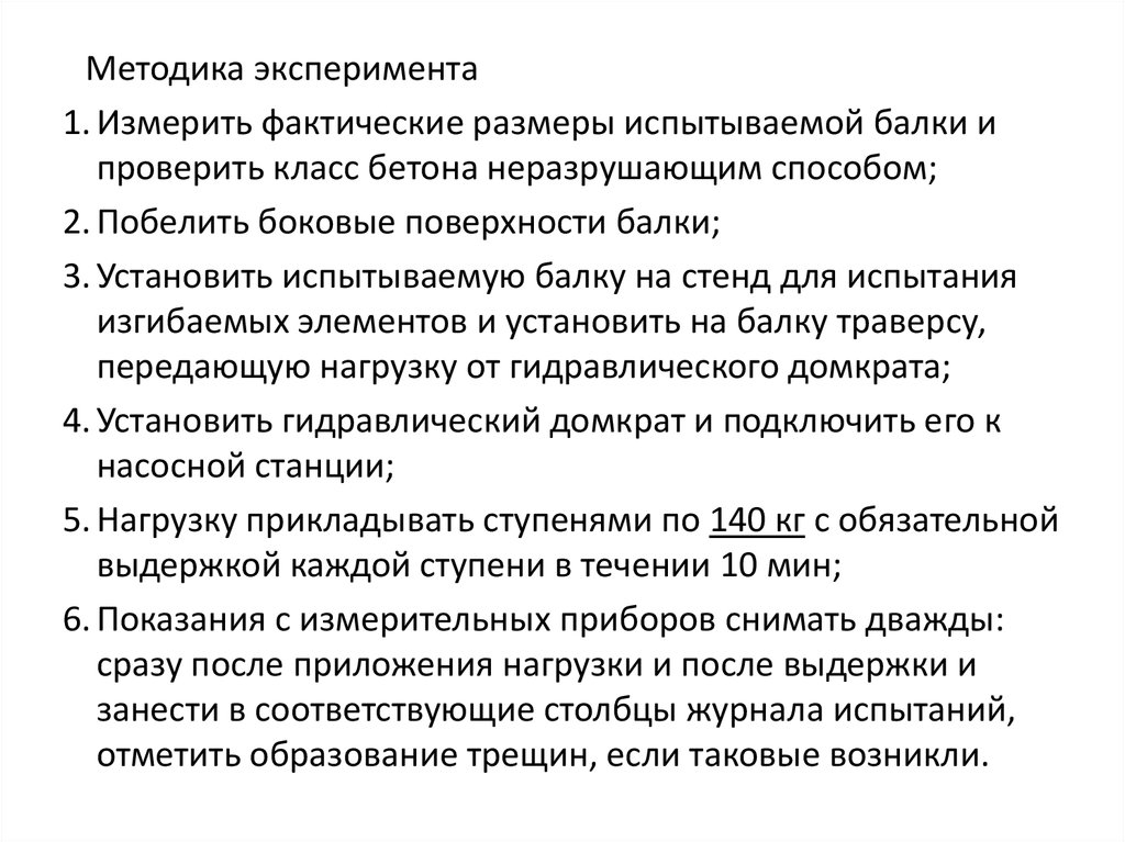 Методика эксперимента1. Измерить фактические размеры испытываемой балки и