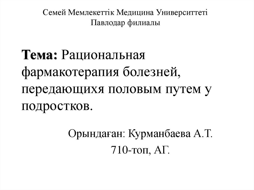 1. Тема: Рациональная фармакотерапия болезней, передающихя половым путем у подростков.