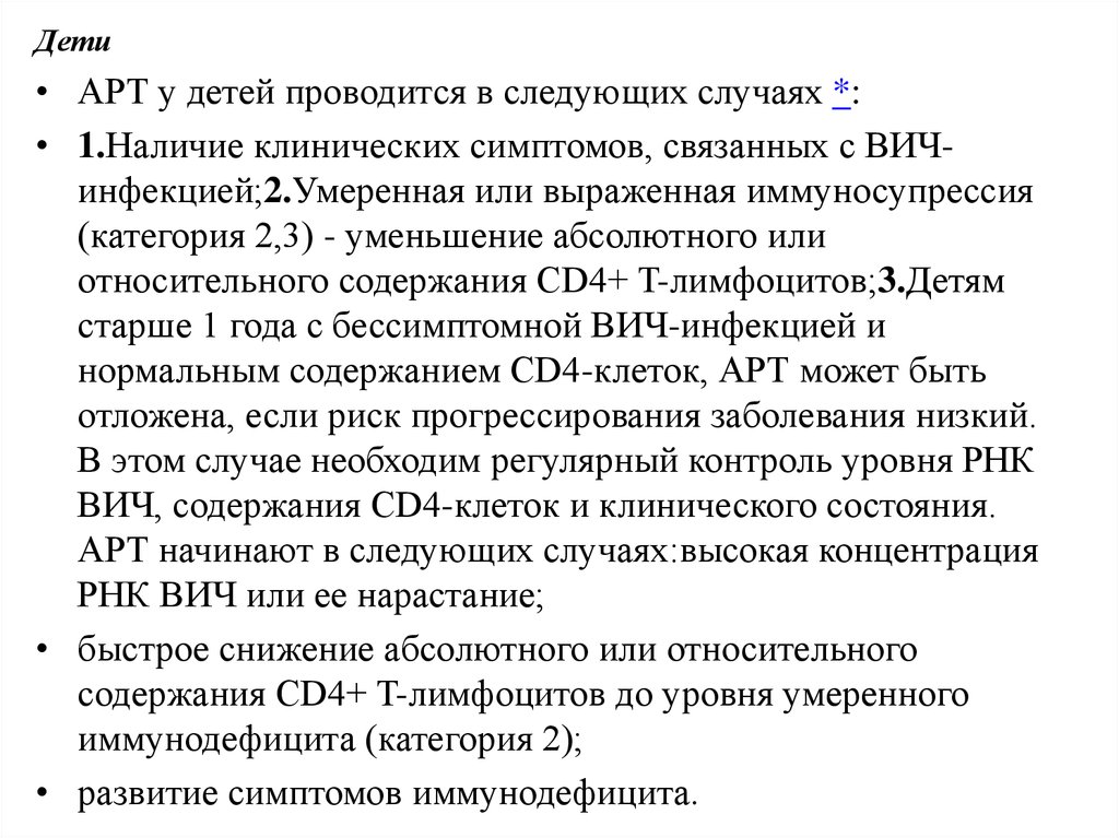 относительного содержания CD4+ T-лимфоцитов;3.Детям