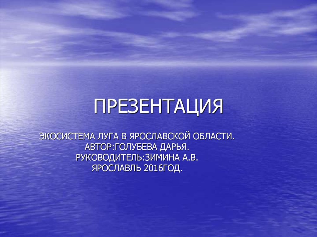 ЭКОСИСТЕМА ЛУГА В ЯРОСЛАВСКОЙ ОБЛАСТИ.АВТОР:ГОЛУБЕВА ДАРЬЯ.
