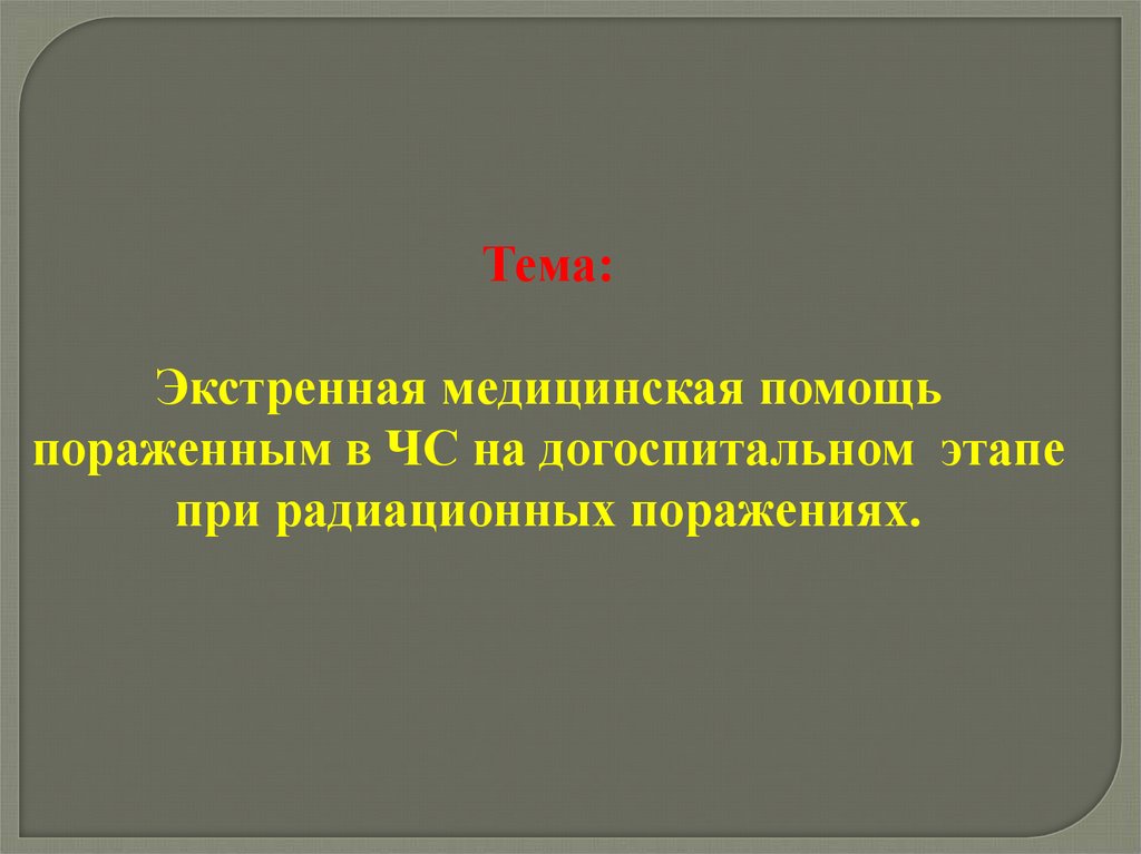 Экстренная медицинская помощь пораженным в ЧС на догоспитальном этапе при радиационных поражениях
