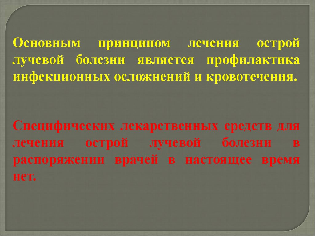 Основным принципом лечения остройлучевой болезни является профилактика