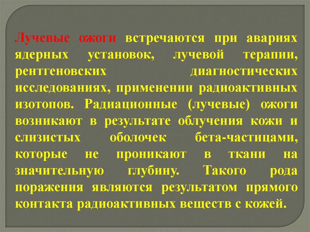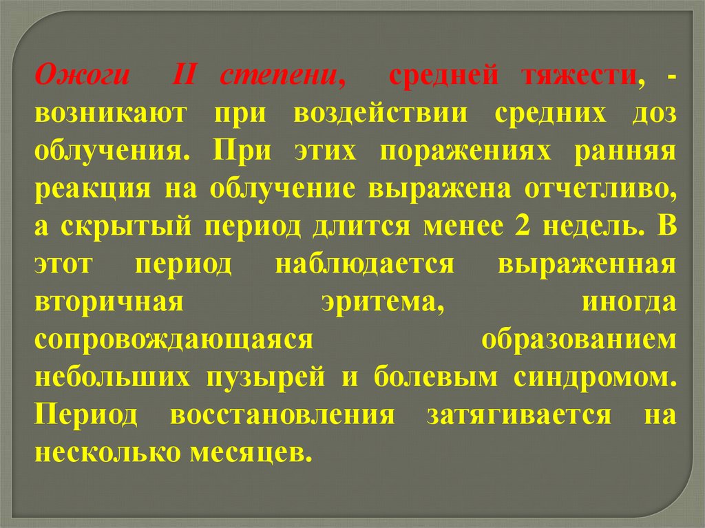 Ожоги II степени, средней тяжести, возникают при воздействии средних дозоблучения. При этих поражениях ранняя