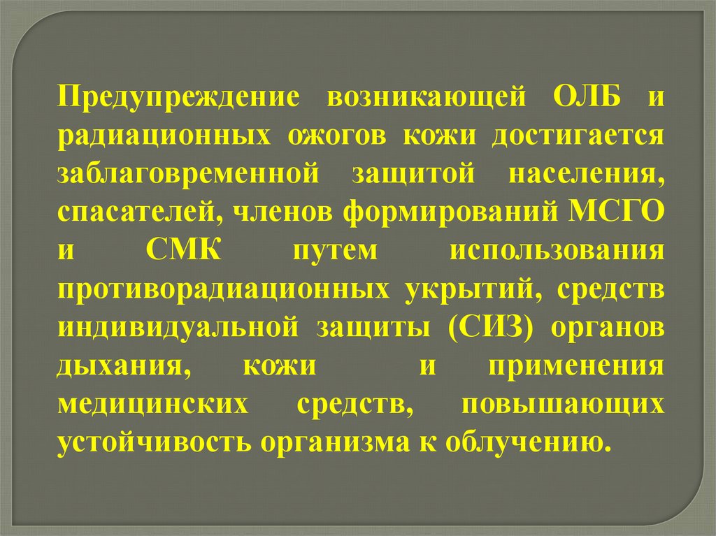 Предупреждение возникающей ОЛБ ирадиационных ожогов кожи достигается