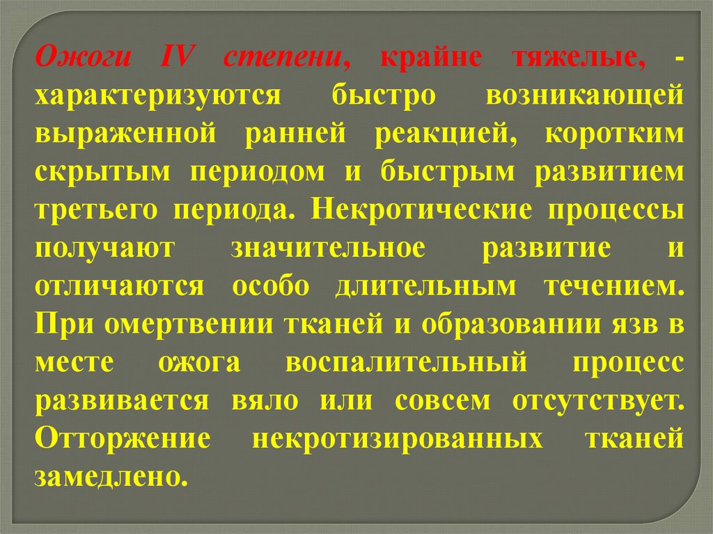 Ожоги IV степени, крайне тяжелые, характеризуютсябыстро