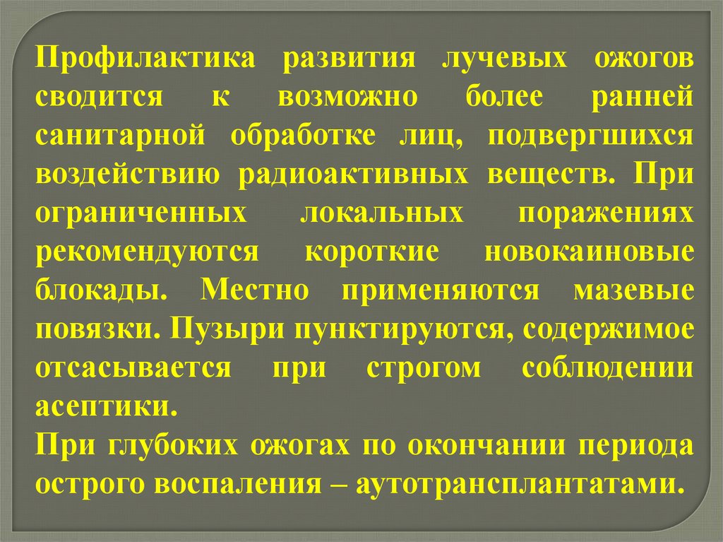 Профилактика развития лучевых ожоговсводится к возможно более ранней