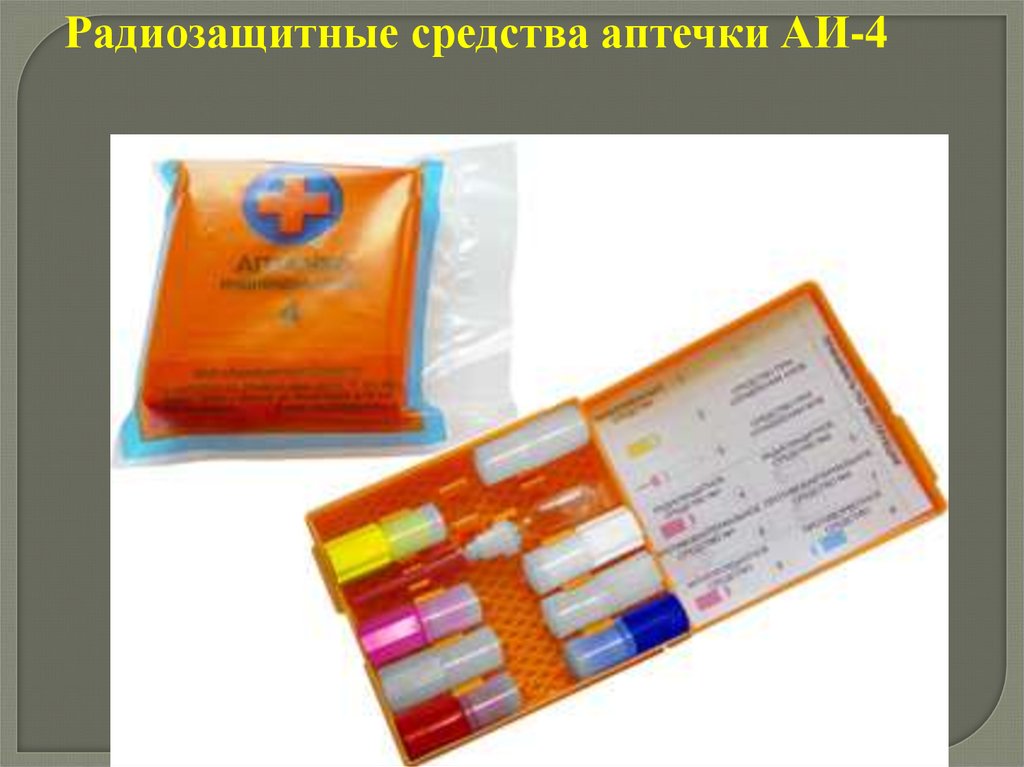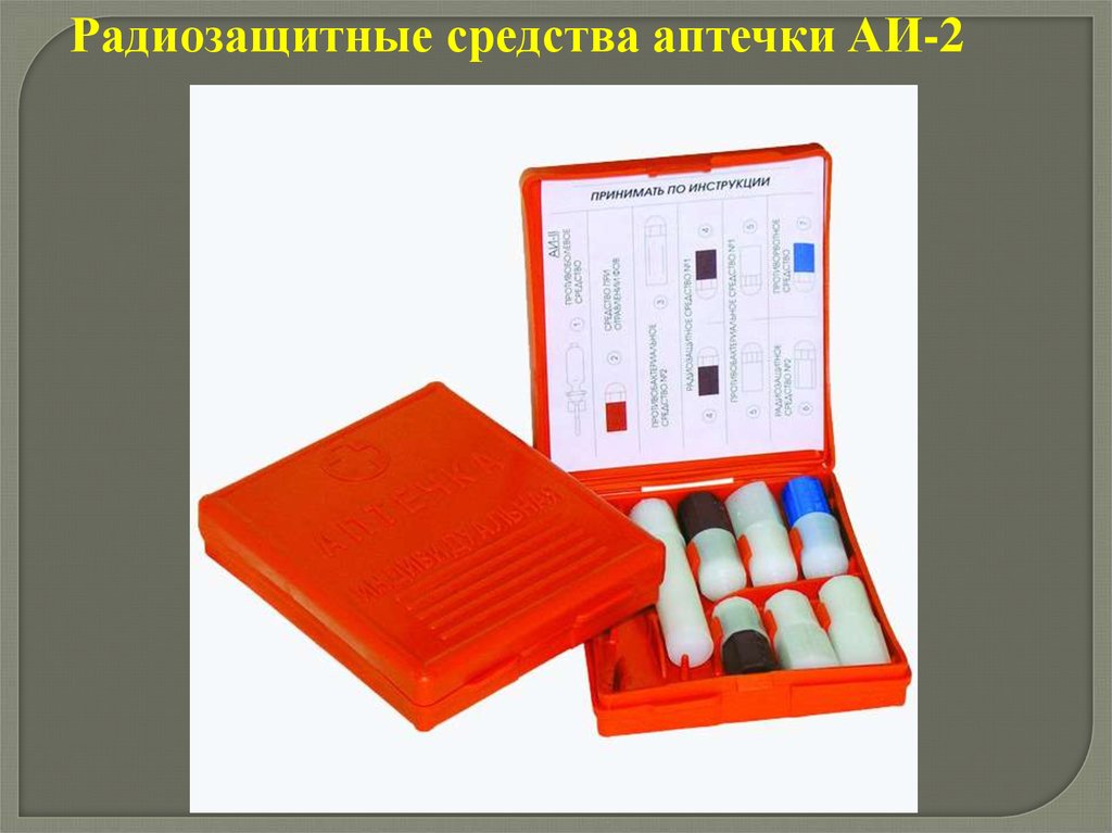 Радиозащитные средства аптечки АИ-2Гнездо 4 – радиозащитное средство №1 – цистамин: в двух пеналах по 6