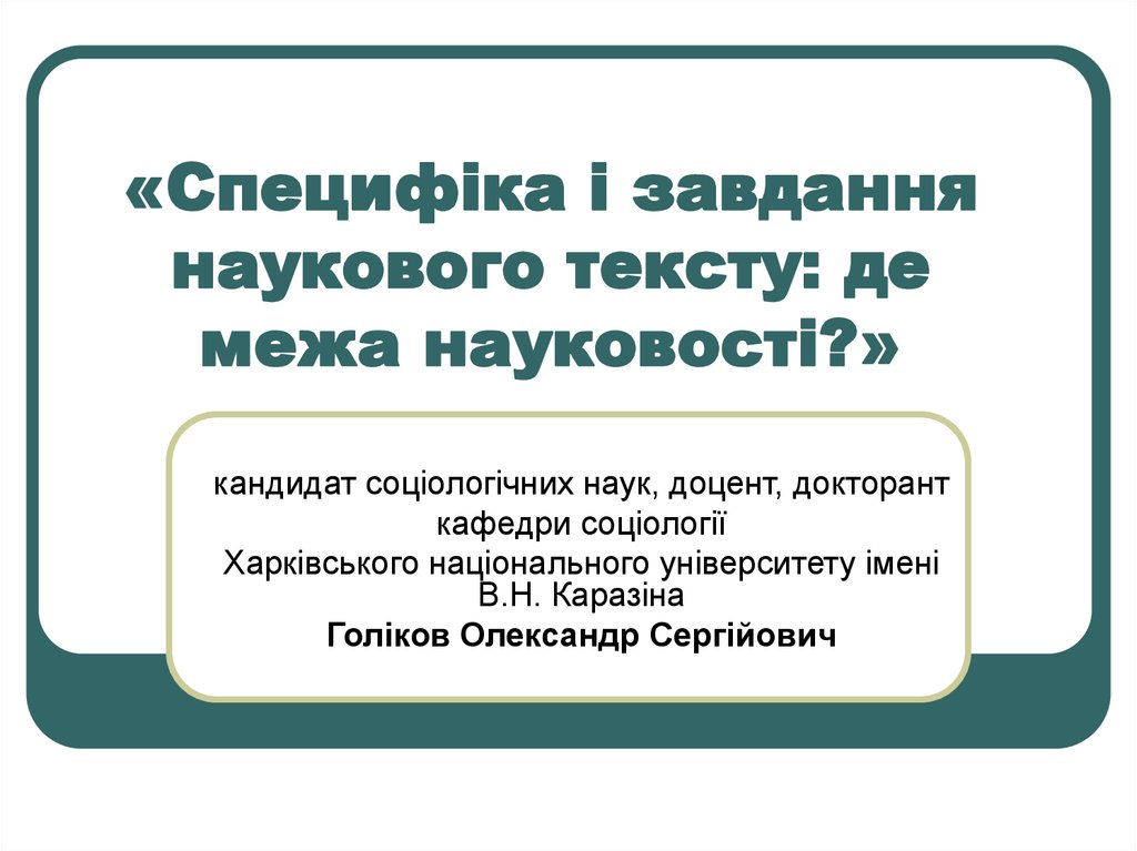 1. «Специфіка і завдання наукового тексту: де межа науковості?»
