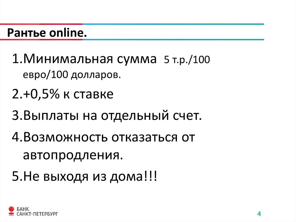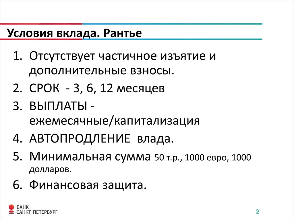 Условия вклада. Рантье1. Отсутствует частичное изъятие и