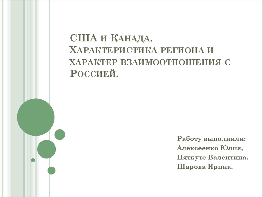 США и Канада. Характеристика региона и характер взаимоотношения с Россией