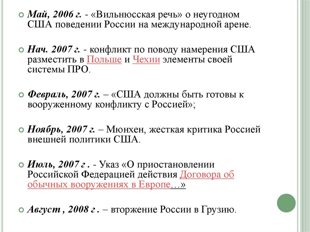 Май, 2006 г. - «Вильнюсская речь» о неугодномСША поведении России на международной арене.