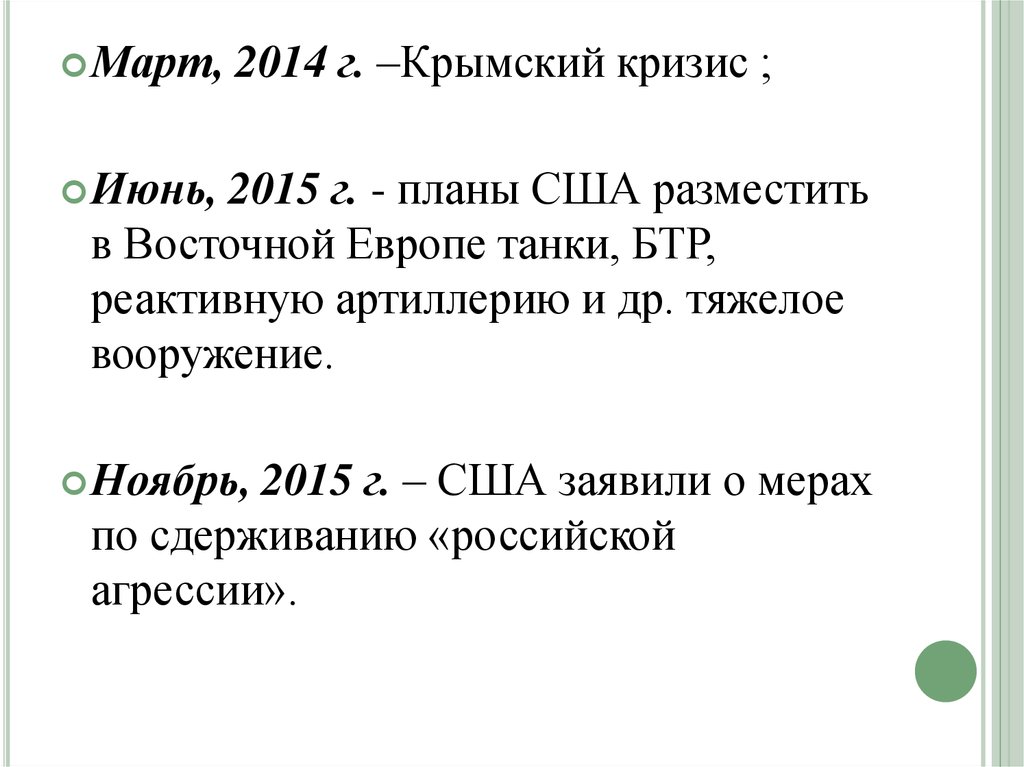 Март,2014 г. –Крымский кризис ;