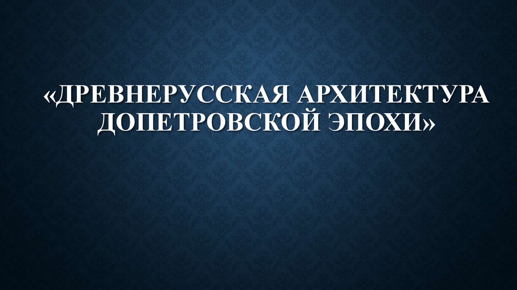 «ДРЕВНЕРУССКАЯ АРХИТЕКТУРАДОПЕТРОВСКОЙ ЭПОХИ»