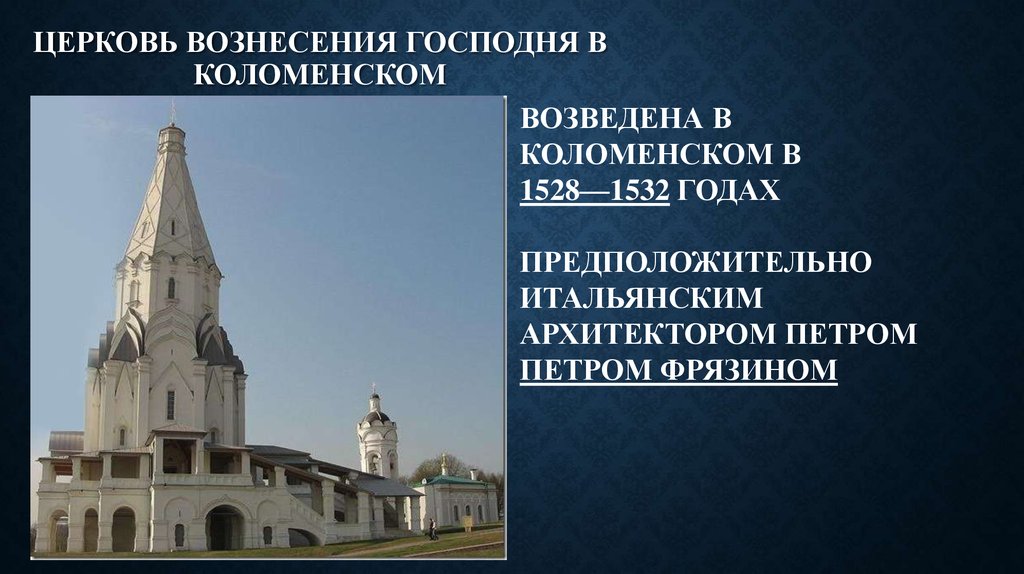 ЦЕРКОВЬ ВОЗНЕСЕНИЯ ГОСПОДНЯ ВКОЛОМЕНСКОМ