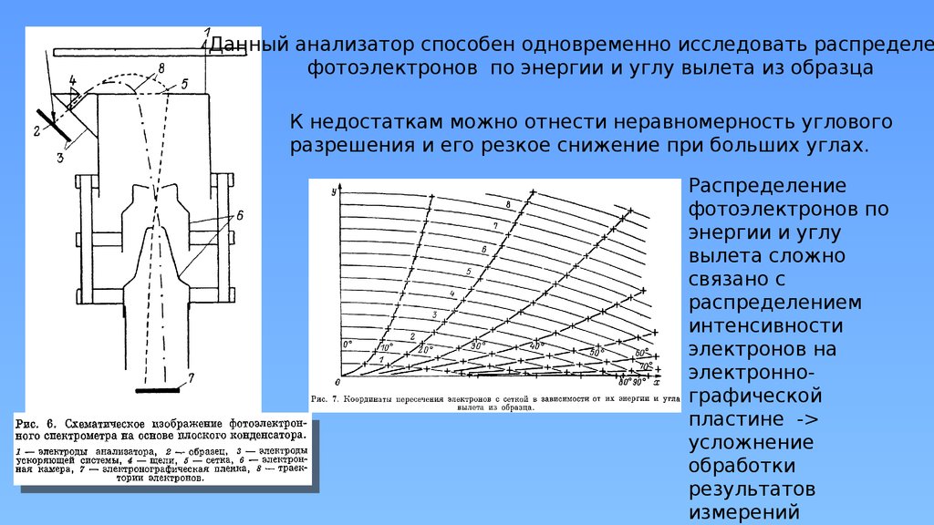 Данный анализатор способен одновременно исследовать распределефотоэлектронов по энергии и углу вылета из образца