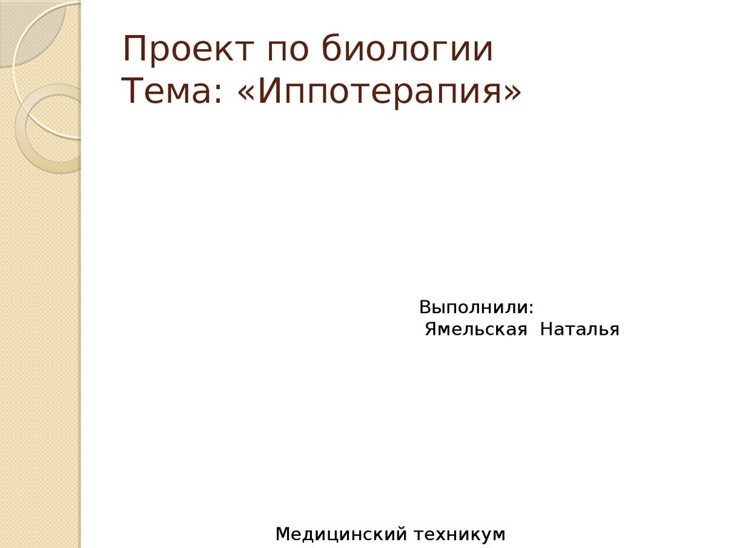 1. Проект по биологии Тема: «Иппотерапия»