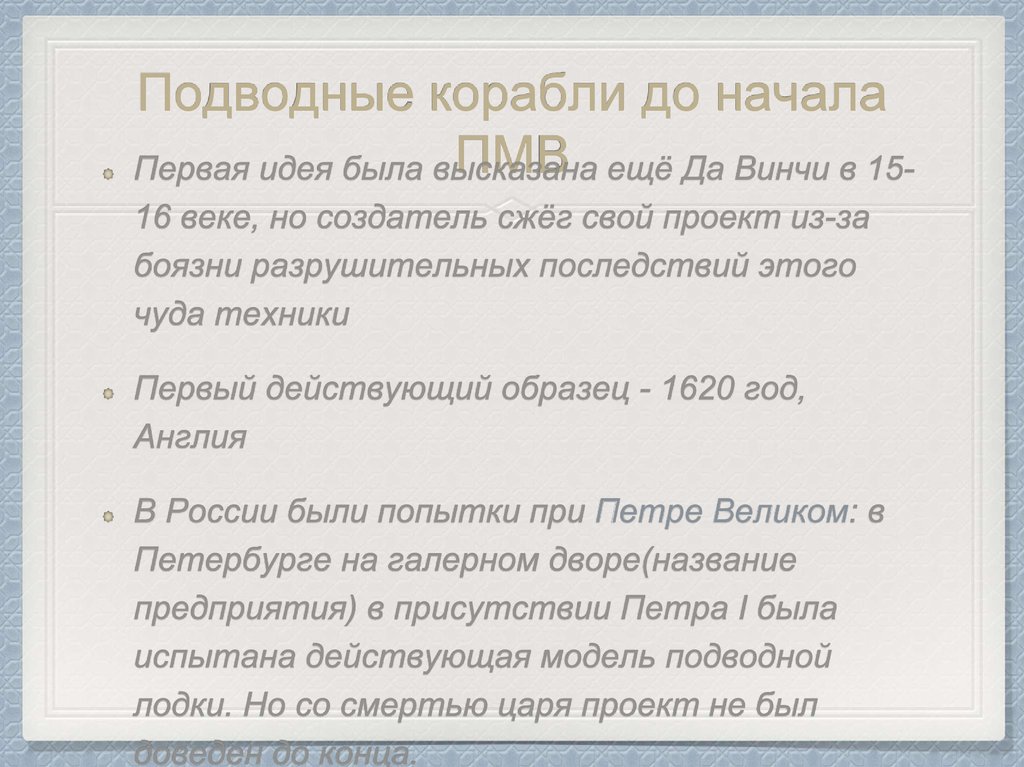 Подводные корабли до начала