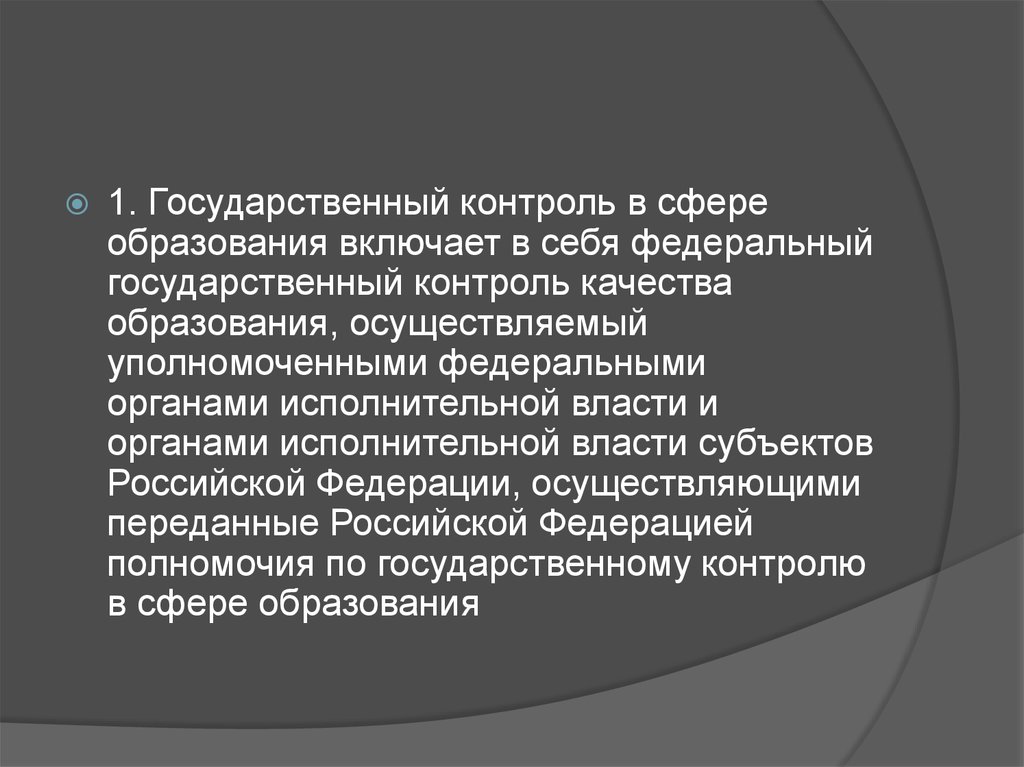 1. Государственный контроль в сфереобразования включает в себя федеральный