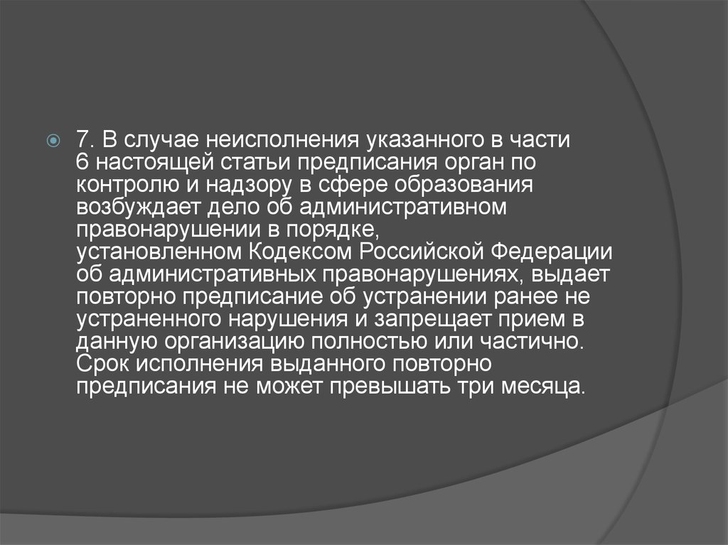7. В случае неисполнения указанного в части6 настоящей статьи предписания орган по