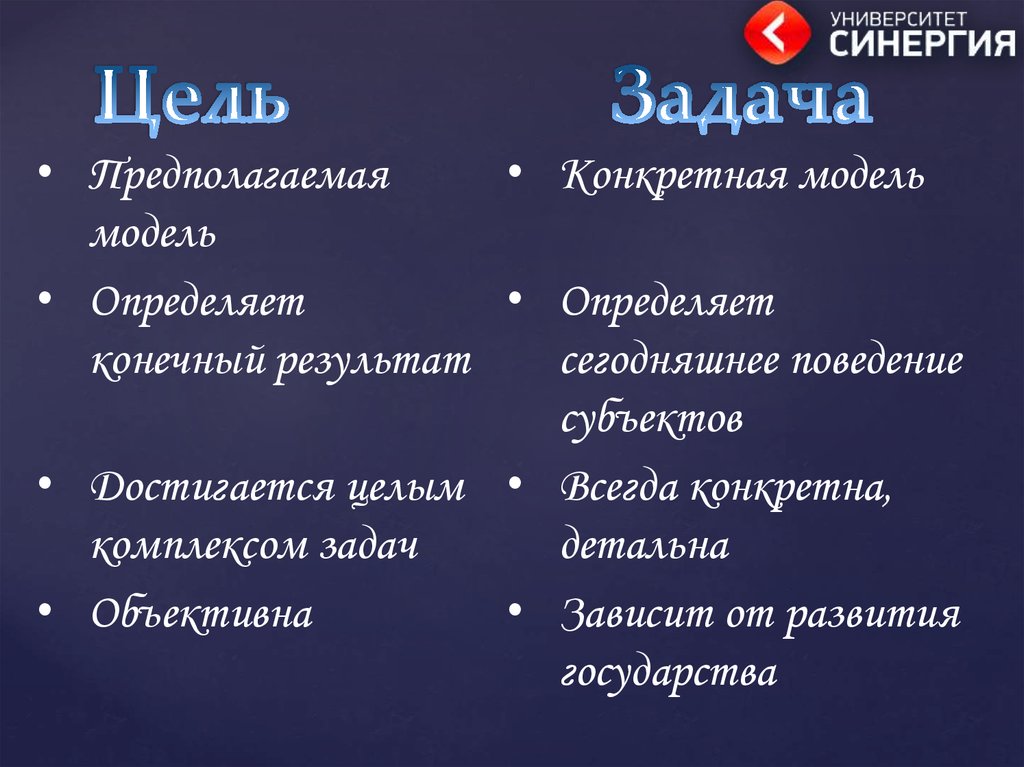 Следовательно, цели и задачи