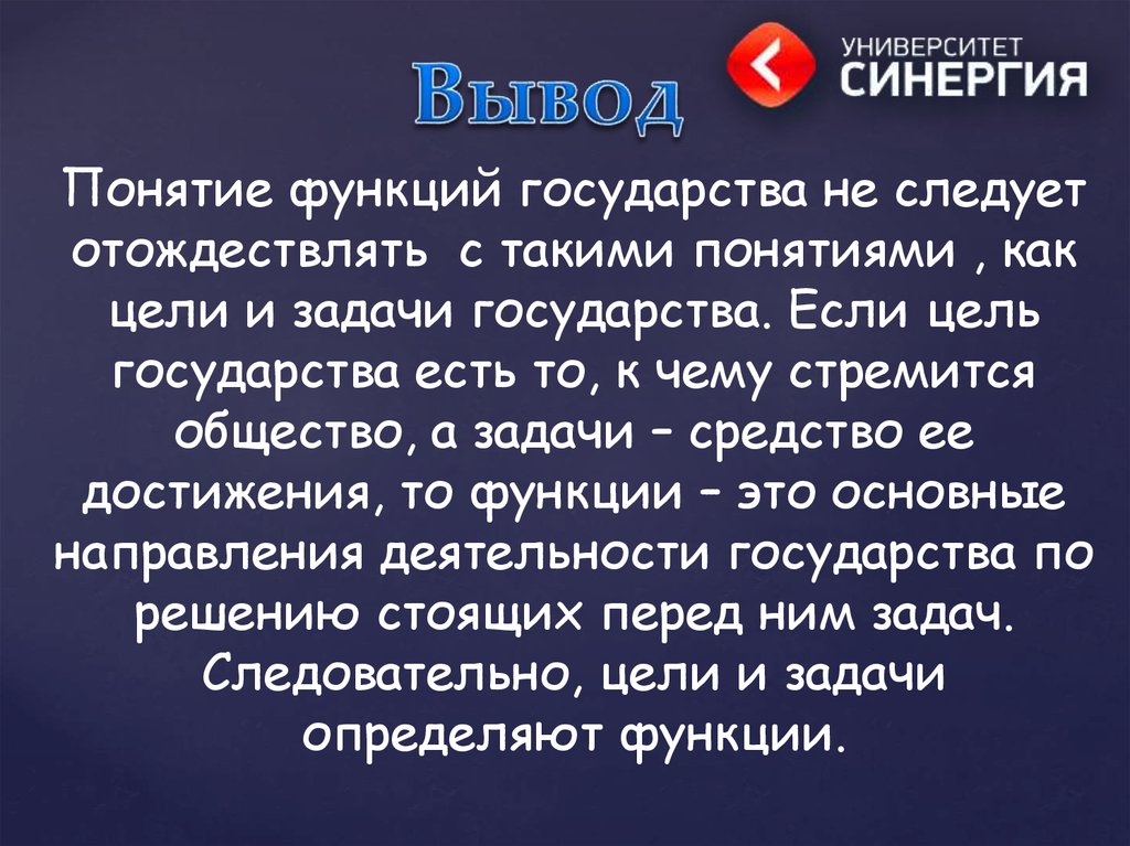 Соотношение целей и задач с функциями государства