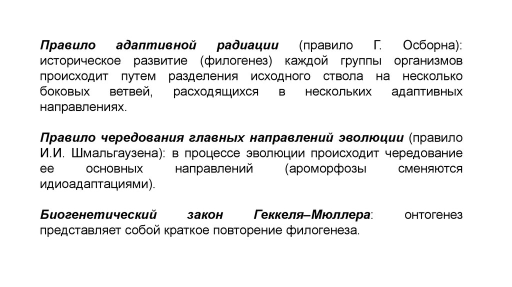 И.И. Шмальгаузена): в процессе эволюции происходит чередование