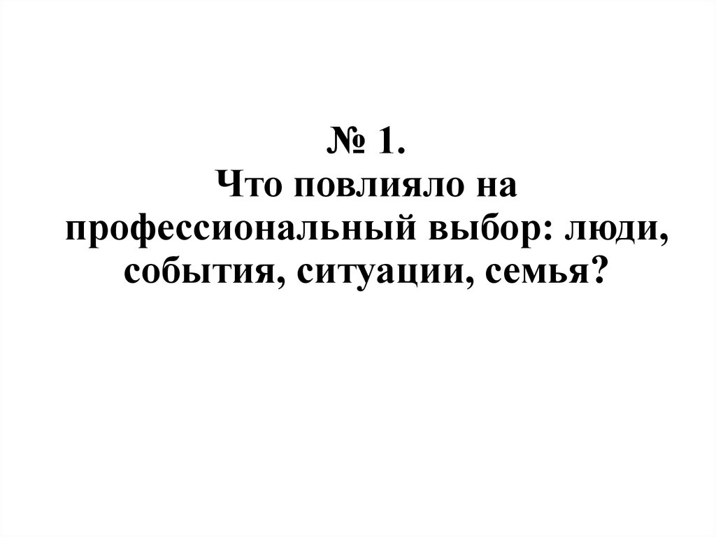 № 1. Что повлияло на профессиональный выбор: люди, события, ситуации, семья?
