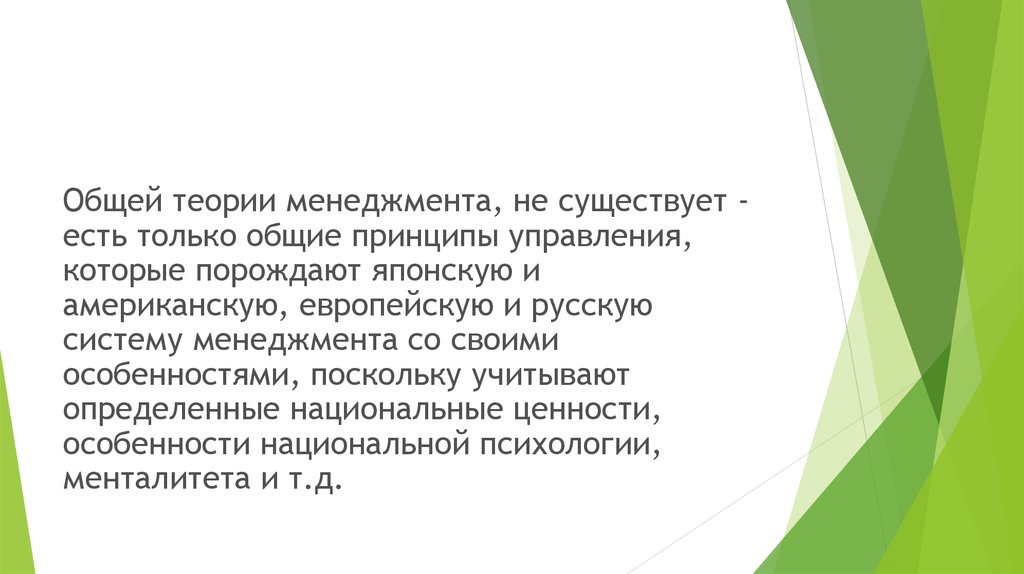 Общей теории менеджмента, не существует есть только общие принципы управления,которые порождают японскую и