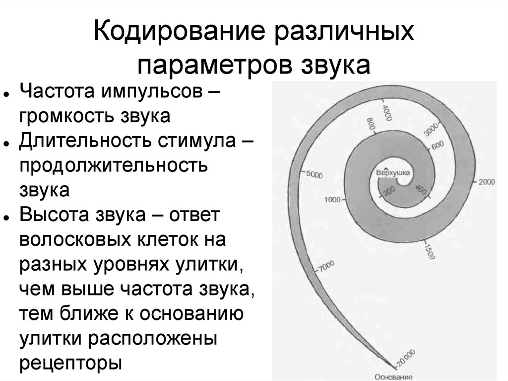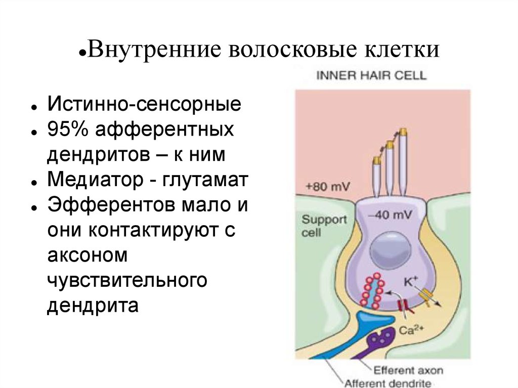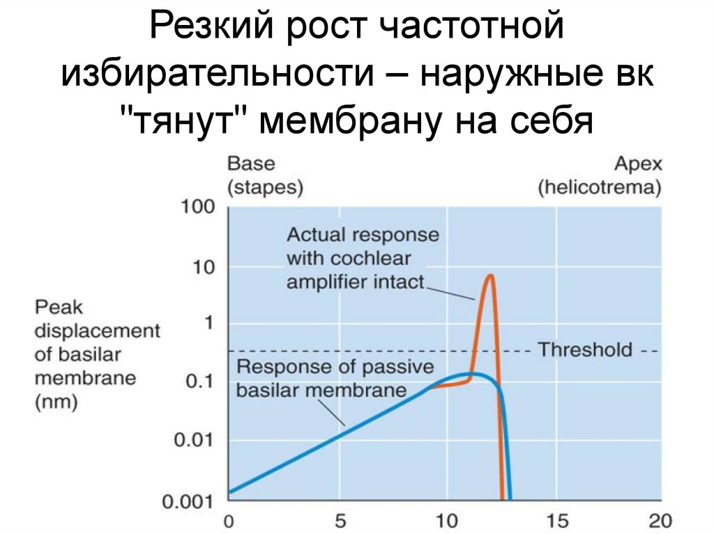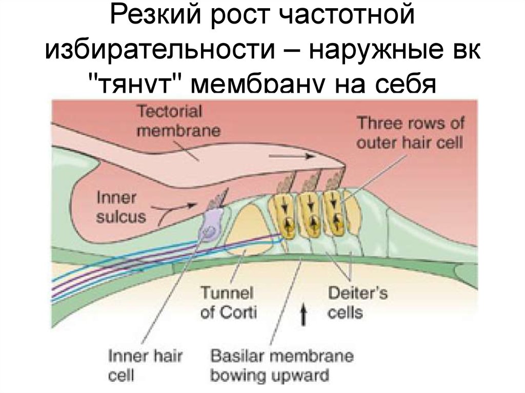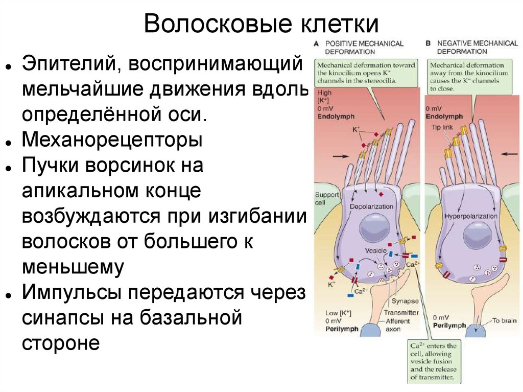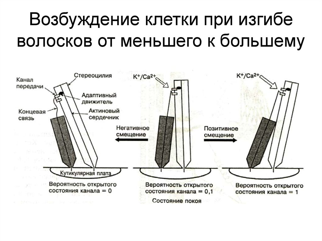 Возбуждение клетки при изгибеволосков от меньшего к большему
