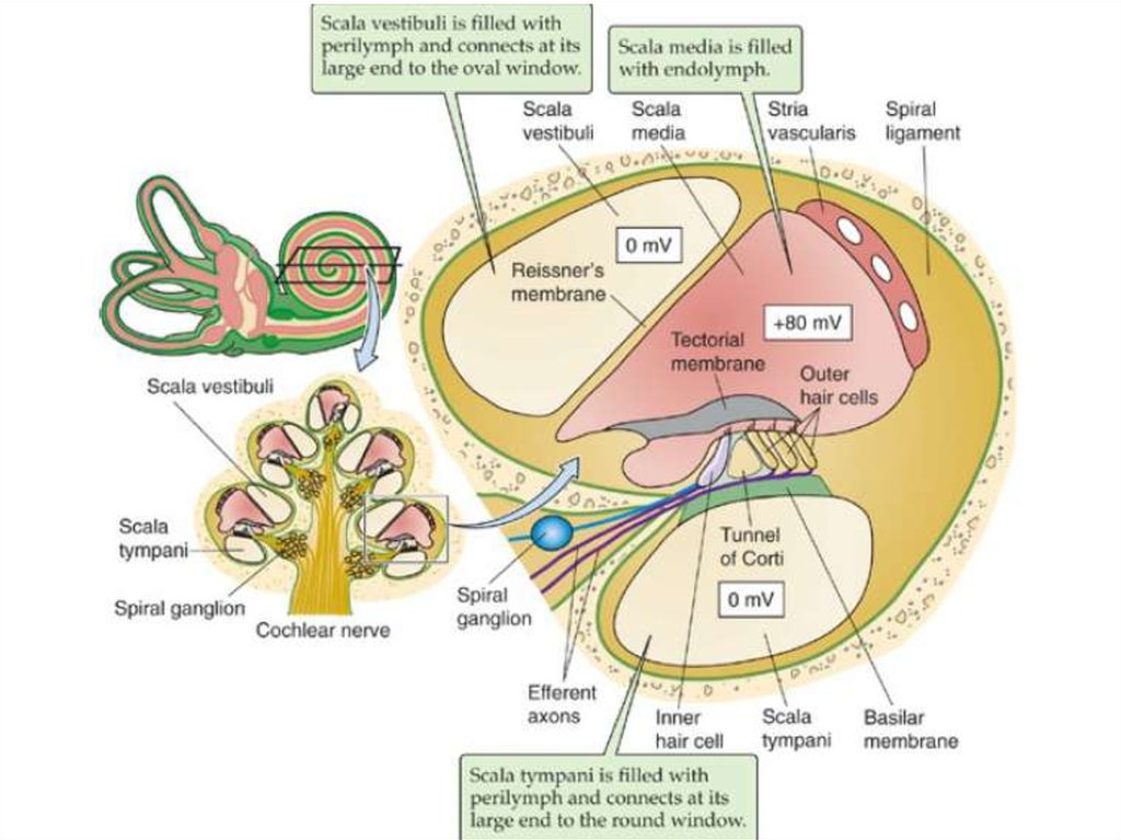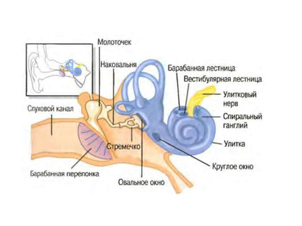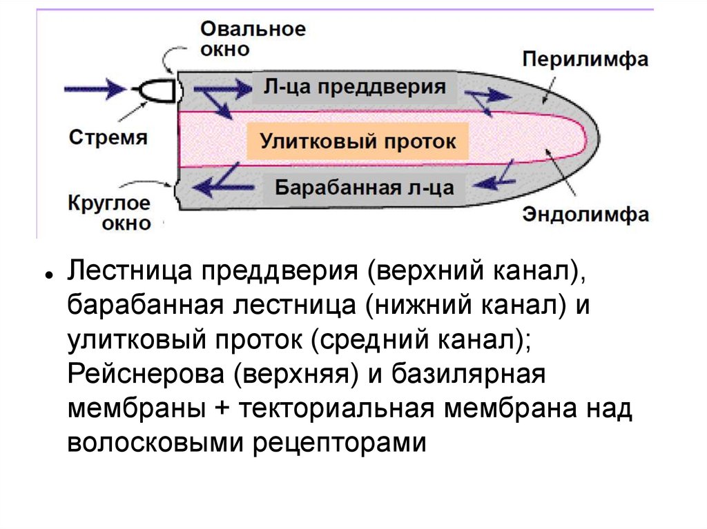 Лестница преддверия (верхний канал),барабанная лестница (нижний канал) и