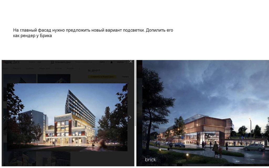 На главный фасад нужно предложить новый вариант подсветки. Допилить егокак рендер у Брика