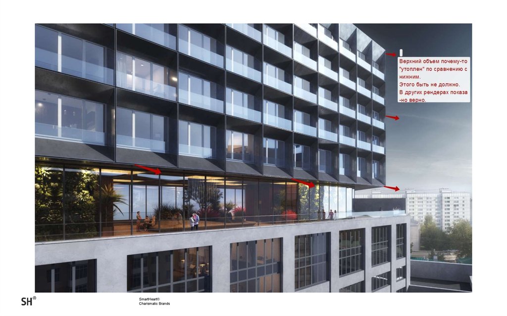 Подсветка фасада доработать. Убрать надпись со здания слева.SmartHeart®