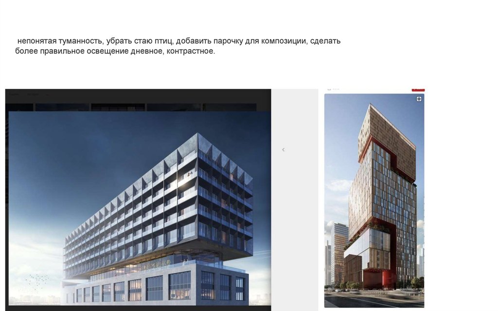 непонятая туманность, убрать стаю птиц, добавить парочку для композиции, сделатьболее правильное освещение дневное, контрастное.