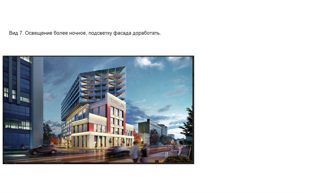 Вид 7. Освещение более ночное, подсветку фасада доработать.8.