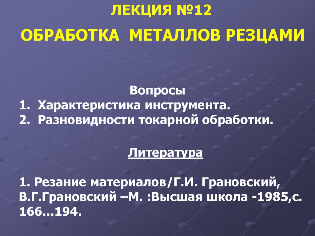 ЛЕКЦИЯ №12ОБРАБОТКА МЕТАЛЛОВ РЕЗЦАМИ
