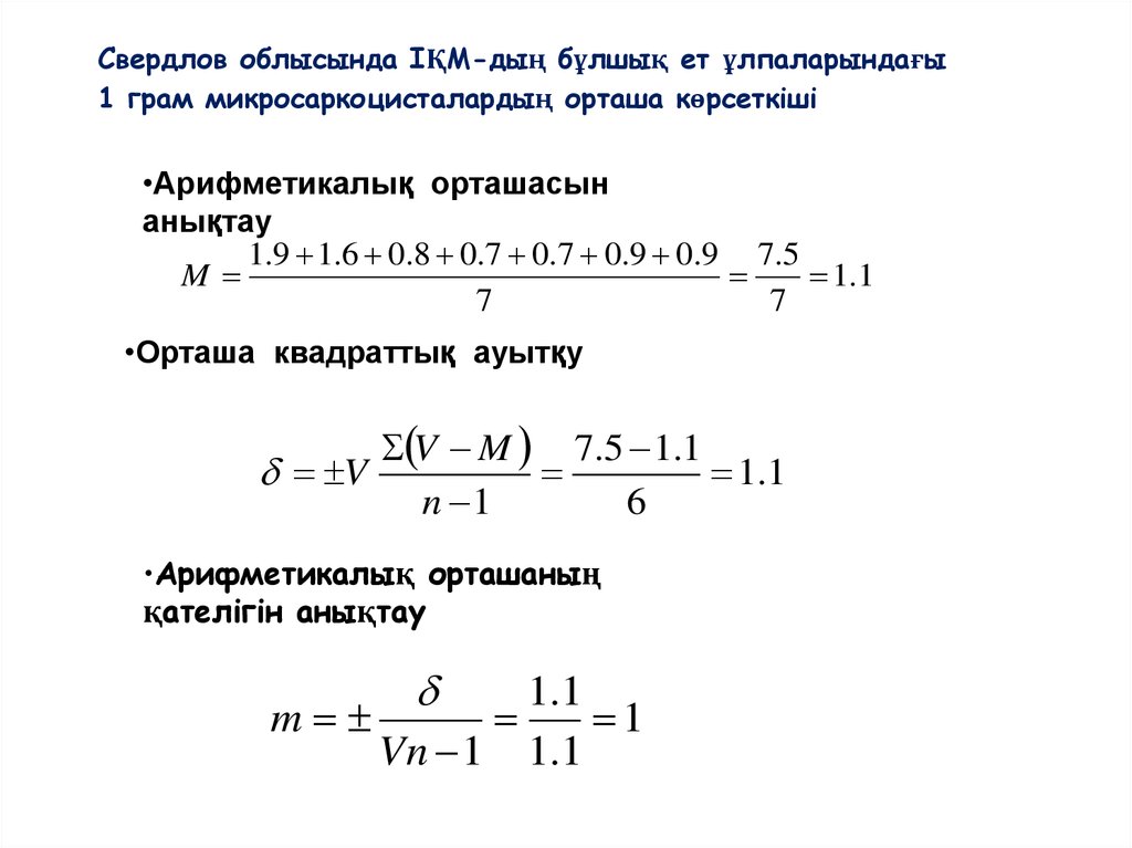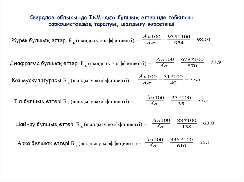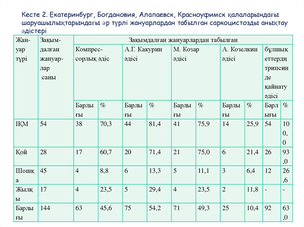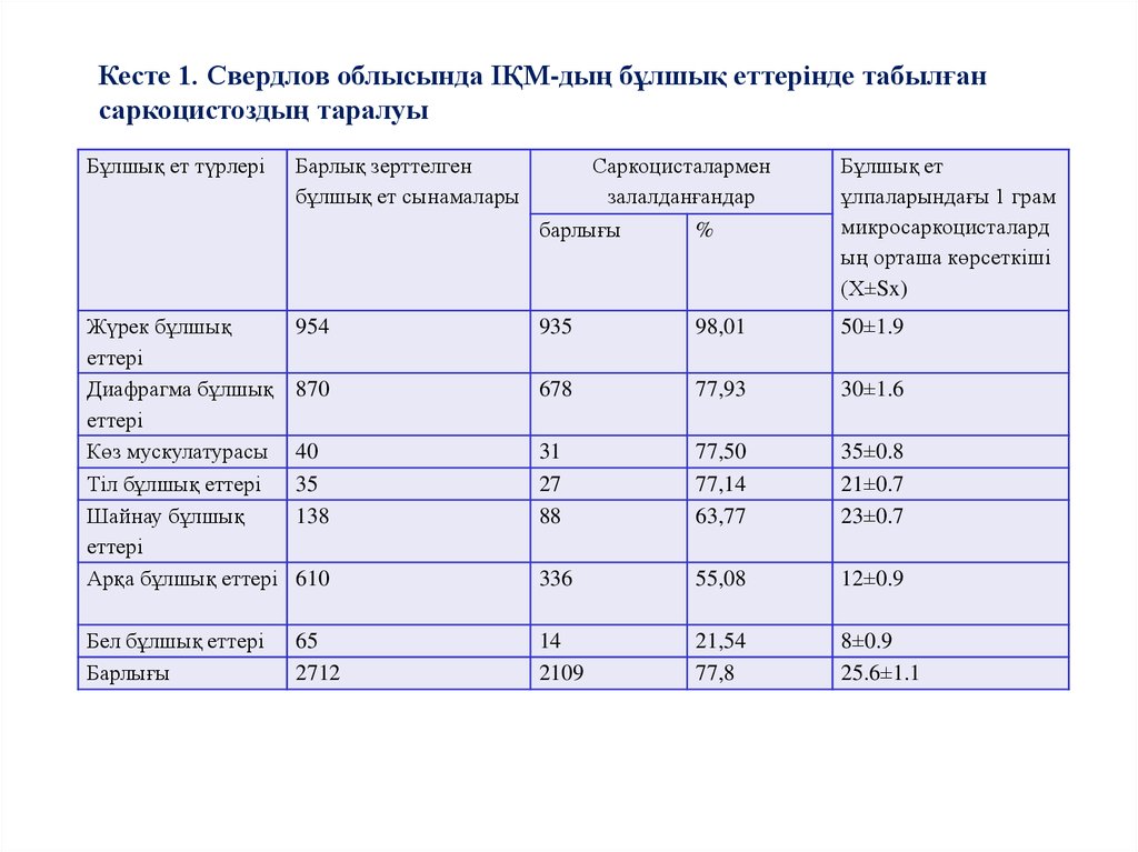 Кесте 1. Свердлов облысында ІҚМ-дың бұлшық еттерінде табылғансаркоцистоздың таралуы
