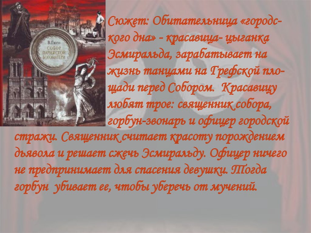 Сюжет: Обитательница «городского дна» - красавица- цыганкаЭсмиральда, зарабатывает на