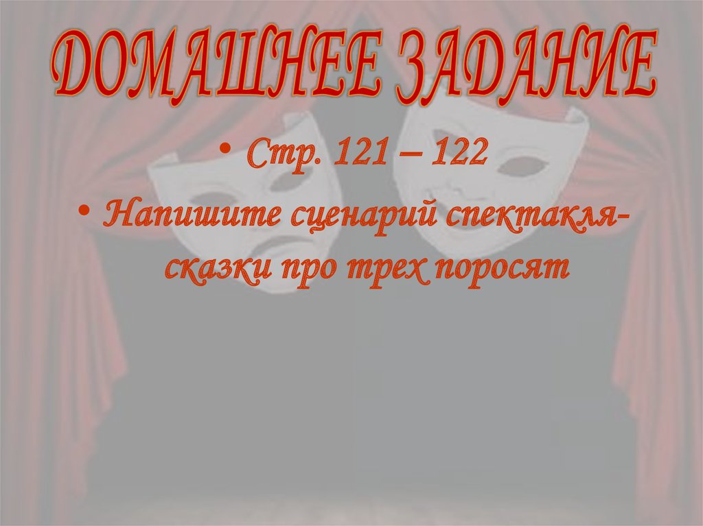 • Стр. 121 – 122• Напишите сценарий спектаклясказки про трех поросят