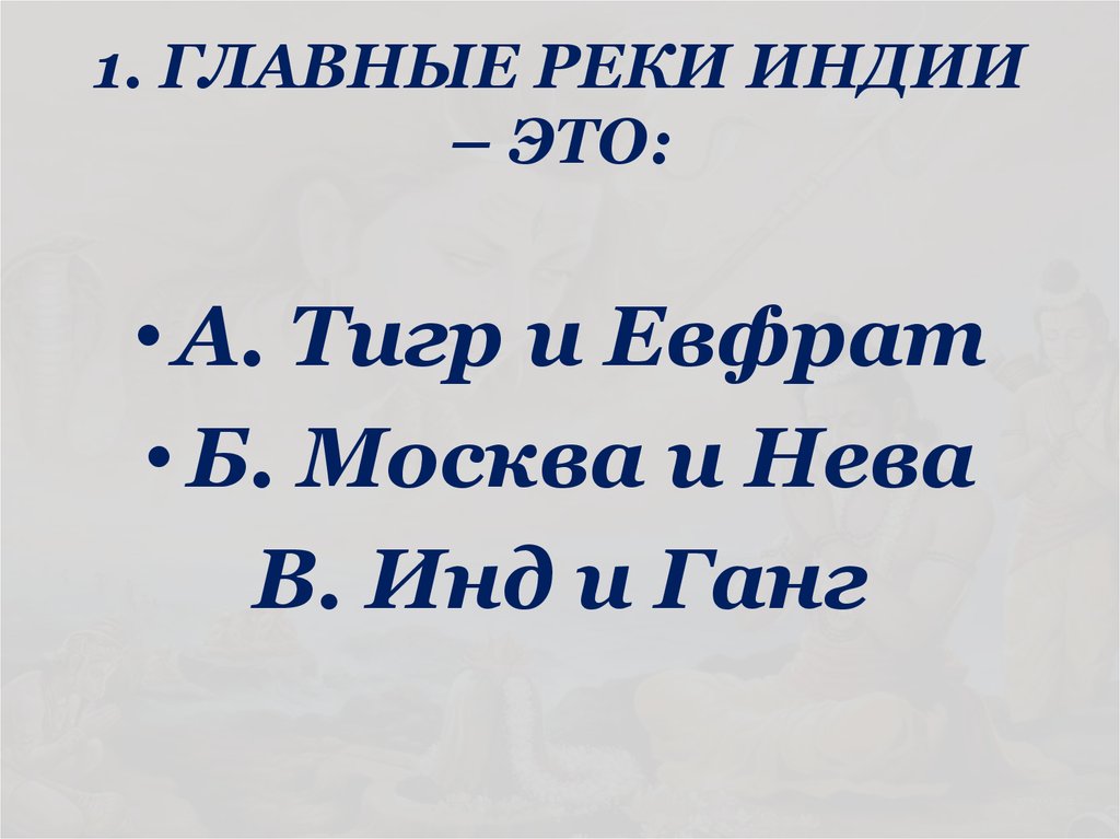 1. 1. ГЛАВНЫЕ РЕКИ ИНДИИ – ЭТО: